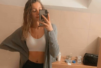 | Piercings | Bauchnabel, Zunge, Nase |